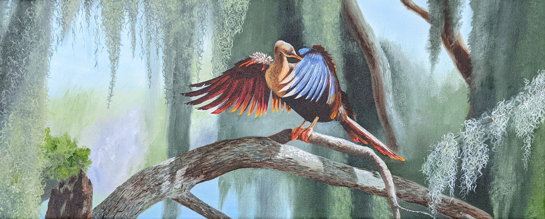 I've been painting for as long as I can remember. I have worked in many different mediums over the years, including pyrography, acrylic paint, watercolors, stained glass, graphite, charcoals, colored pencils, clay, pastels, oil pastels, pen and ink, and more. I have found that I enjoy working most with oils. There is a vibrancry in them that you can't get with other mediums. Rather than just painting a scene, I feel I am able to evoke a feeling.